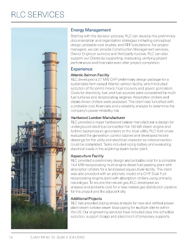 Owner Engineer services and third party reviews. RLC can also